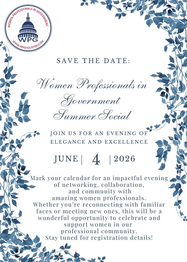 Mark your calendar for the Annual Women Professionals in Government (WPG) Summer Social Fundraising Event! Read more on the Summer Social page.